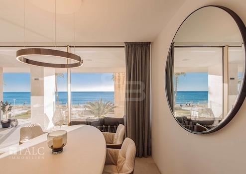 In absoluter Bestlage von Portixol, direkt an der ersten Meereslinie, befindet sich dieses außergewöhnliche Designer-Apartment innerhalb der renommierten Wohnanlage Marina Plaza – einer der gefragtesten Adressen Palmas. Die geschlossene Anlage bietet ihren Bewohnern einen direkten, privaten Zugang zur Strandpromenade und verbindet höchste Privatsphäre mit urbanem Lebensgefühl am Meer.
