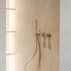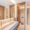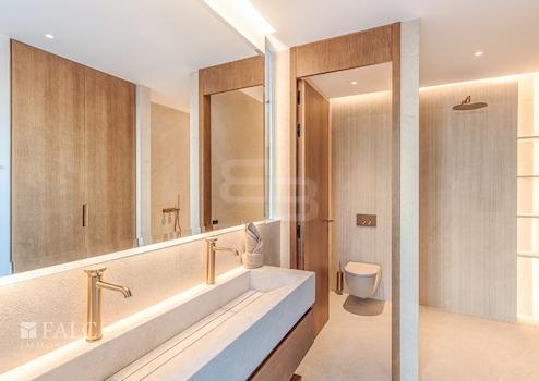 Die Bäder sowie das Gäste-WC präsentieren sich auf exklusivem Designniveau mit hochwertigen Natursteinoberflächen und eleganten Armaturen von Gessi®. Großzügige Walk-in-Duschen mit beleuchteten Nischen, maßgefertigte Waschtische und hinterleuchtete Spiegel schaffen ein harmonisches, stilvolles Ambiente. Integrierte Sonance®-Deckenlautsprecher und ein modernes Lüftungssystem verbinden Design und Funktionalität auf höchstem Niveau.