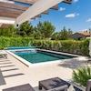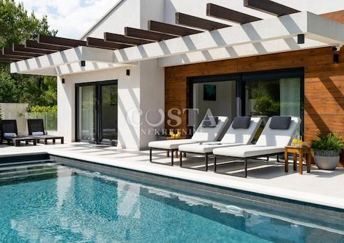 In Pridraga in der Gespanschaft Zadar steht eine moderne Villa mit Pool zum Verkauf. Das 172 m² große, eingeschossige Haus befindet sich auf einem 589 m² großen Grundstück. Es verfügt über ein geräumiges Wohnzimmer, eine Wohnküche, drei Schlafzimmer, zwei Badezimmer, ein Gäste-WC und einen Abstellraum. Vom Wohnzimmer gelangt man auf eine überdachte Terrasse mit Pool und Sommerküche. Die Terrasse bietet einen teilweisen Meerblick. Das Haus ist vollklimatisiert, die Badezimmer sind mit Fußbodenheizung ausgestattet. Private Parkplätze stehen im umzäunten Garten zur Verfügung.
