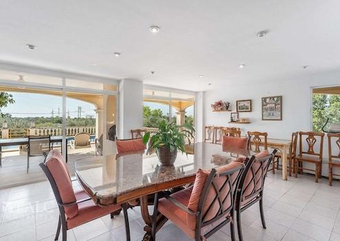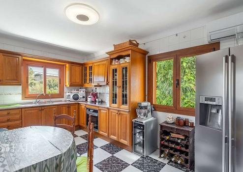 Diese schöne Finca im mallorquinischen Stil in Marratxi bietet einen tollen Weitblick auf die Berge und liegt in einer ruhigen Wohngegend, etwa 20 Autominuten vom Zentrum der Inselhauptstadt - Palma de Mallorca - entfernt. Die renovierte Immobilie verfügt über eine bebaute Fläche von ca. 400 m2, die wie folgt auf 2 Etagen verteilt sind: das Erdgeschoss hat einen separaten Eingang und bietet ein Wohn-/ Esszimmer mit Zugang zur Terrasse, eine Küche mit Kamin, einen Hauswirtschaftsraum, sowie ein Bad. Die erste Etage, ebenfalls mit separatem Eingang, besteht aus einem Wohn-/ Esszimmer, einer Küche, 4 Schlafzimmern mit Einbauschränken, sowie 2 Badezimmern. Der hübsche Aussenbereich mit überdachter Terrasse, einem Grillplatz, Garten mit Obstbäumen und einem herrlichen Privatpool mit schönem Weitblick, lädt dazu ein, die tolle, mediterrane Atmosphäre der Insel in vollen Zügen zu geniessen. Diese schöne Finca in Marratxi ist mit Klimaanlage, einem Kamin, Heizkörpern, doppelt verglasten Climalit-Fenstern, sowie Steinzeugböden ausgestattet. Es gibt eine geräumige Garage mit Platz für 3 Autos. Die Immobilie bietet eine attraktive, ruhige Lage, etwa 20 Autominuten vom nächsten herrlichen Strand mit kristallklarem Wasser und vom Zentrum Palmas entfernt.