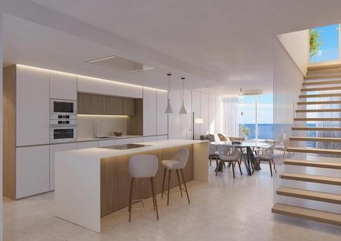 Nur 50 Meter vom Strand entfernt erwarten Sie diese exklusiven Apartments mit 3 Schlafzimmern, 2 Badezimmern, privatem Jacuzzi, Swimmingpool, Außenküche und optionalem Tiefgaragenstellplatz. Jedes Apartment verfügt über eine eigene Terrasse, während die gemeinschaftliche Dachterrasse den perfekten Ort bietet, um die spanische Sonne den ganzen Tag zu genießen. Die Immobilie liegt ideal in der Nähe von Supermärkten, Apotheken, Restaurants und Bars und verbindet Komfort, Luxus und die einmalige Atmosphäre der Küste.