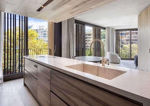 Diese fantastische Neubau-Wohnung in Palma befindet sich in einer schöner Lage am Paseo Mallorca, der von Bäumen gesäumten Promenade mit Blick auf den Riera-Wasserlauf. Der seit 2022 fertiggestellte Wohnkomplex mit einer aussergewöhnlichen Architektur setzt auf Nachhaltigkeit, Energieeffizienz und Komfort. Beim Bau, sowie beim Innenausbau wurden nur Materialien von höchster Qualität verwendet. Diese Bauweise entspricht dem nZEB-Standard (Nearly Zero Energy Building) für den Verbrauch. Das exklusive Apartment mit ca. 182 m2 Wohnfläche ist wie folgt aufgeteilt: Eingangsbereich, helles Wohn-Esszimmer, voll ausgestattete Küche, Hauswirtschaftsraum, sowie 3 Schlafzimmer, 3 Badezimmer, davon 2 en-suite. Das Wohnzimmer und das Esszimmer verfügen über große Schiebefenster mit UV-Schutz. An der Fassade befinden sich außerdem Schiebejalousien aus Holz mit vertikalen Lamellen, die bei Bedarf die Sonne hereinlassen und so ein fantastisches Licht- und Schattenspiel in den Innenräumen zaubern.