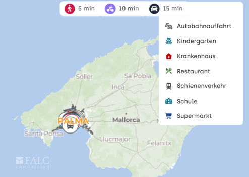 Die nächste Bushaltestelle Passeig Mallorca es Baluard ist fußläufig erreichbar und bietet eine unkomplizierte Anbindung in verschiedene Stadtteile. Mit dem Auto gelangen Sie in wenigen Minuten zur nächsten Autobahnauffahrt, wodurch auch Ziele außerhalb Palmas schnell erreichbar sind. Der Flughafen Palma de Mallorca ist je nach Verkehr in etwa 15 bis 20 Minuten mit dem Auto erreichbar.