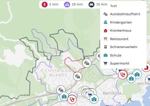 Die Lage in Costa d’en Blanes verbindet ruhiges Wohnen im Südwesten Mallorcas mit kurzen Wegen zu allem, was den Alltag angenehm macht. In der direkten Umgebung finden Sie eine gewachsene Infrastruktur, gleichzeitig bleibt das Wohnumfeld angenehm zurückgezogen.