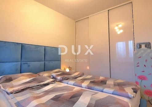 Sie besteht aus einem Eingangsbereich, einem Badezimmer mit WC, einem Schlafzimmer, einem Wohnzimmer mit angrenzender Küche und Essbereich sowie einer 4,71 m² großen Loggia/einem Balkon. Dieser ist mit Sicherheitsglas und einem modernen Falttürsystem ausgestattet und bietet einen zusätzlichen, angenehmen Wohnraum, der das ganze Jahr über genutzt werden kann. Die Wohnung wird komplett möbliert mit hochwertigen und exklusiven Möbeln verkauft, darunter eine hochwertige, maßgefertigte Küche mit allen Geräten, die im Preis inbegriffen sind – zusätzliche Investitionen sind nicht nötig.