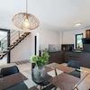 Das Obergeschoss beherbergt zwei großzügige Schlafzimmer, ein luxuriös ausgestattetes Badezimmer sowie einen zusätzlichen Wohnbereich. Von hier aus gelangt man auf die große Terrasse, die einen herrlichen Blick auf den Garten und das umliegende Grün bietet – ein idealer Ort zum Entspannen.