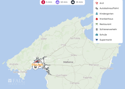 Die Anbindung an den öffentlichen Nahverkehr ist sehr komfortabel: Eine Bushaltestelle liegt direkt in der Nähe, die Estació Intermodal an der Plaça d’Espanya ist ebenfalls schnell erreichbar und bietet Anschluss an Bahn und weitere Buslinien. Mit dem Auto gelangt man zügig zur Ma 19. Der Flughafen Palma de Mallorca ist ebenfalls gut erreichbar.