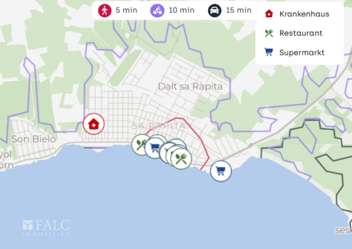 Für den täglichen Bedarf ist bestens gesorgt. Ein Supermarkt wie Eurocop Sa Botigueta liegt praktisch um die Ecke, ebenso ein Spar. Frische Backwaren bekommen Sie in der Nähe bei Forn Sa Rapita. Auch an die Gesundheitsversorgung ist gedacht, mit der Farmacia Sa Rapita in kurzer Distanz.