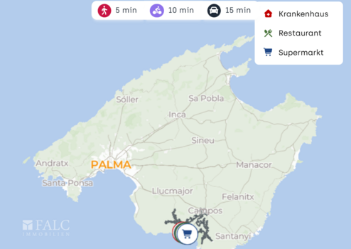 Die Immobilie liegt im südlichen Mallorca, in Cala Pi, in einem gewachsenen Küstenumfeld, das Ruhe mit alltagstauglicher Infrastruktur verbindet. Hier genießen Sie kurze Wege im Ort und sind gleichzeitig schnell an den schönsten Natur- und Strandabschnitten der Region.
