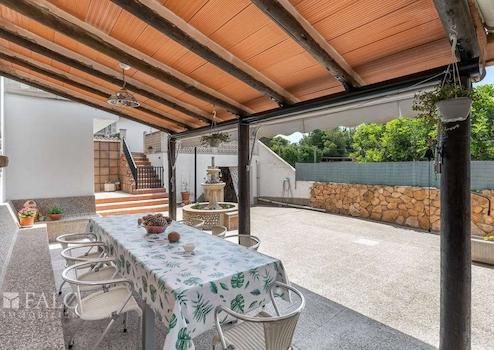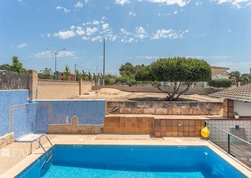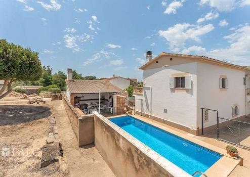 Im Hauptgeschoss, über den Flur, finden Sie 3 Schlafzimmer und ein Badezimmer sowie eine Waschküche. Im Obergeschoss befindet sich ein großes Wohn-Esszimmer mit Kamin und Zugang zu einer fantastischen Eckterrasse. Über einen Korridor gelangen Sie zu 3 weiteren Schlafzimmern und einem Badezimmer. Das Hauptschlafzimmer hat Zugang zu einem schönen Balkon und alle Schlafzimmer verfügen über Einbauschränke. Der herrliche Aussenbereich bietet einen wunderschönen Swimmingpool und mehrere Terrassen zum Entspannen und Geniessen des mediterranen Ambientes. Weitere Merkmale: doppelt verglaste Fenster, Rollläden, Kamin und eine Garage von ca. 36 m2. Das Haus ist im Sommer kühl und im Winter warm, dank der dicken Mauern. In der Umgebung von El Arenal gibt es wunderbare Strände, einen Jachthafen, mehrere internationale Restaurants und nette Cafés. Hier finden Sie auch mehrere Geschäfte.