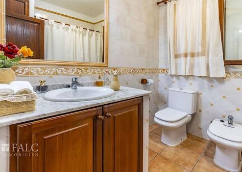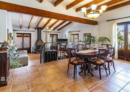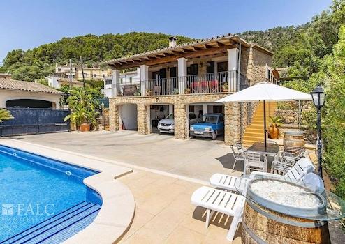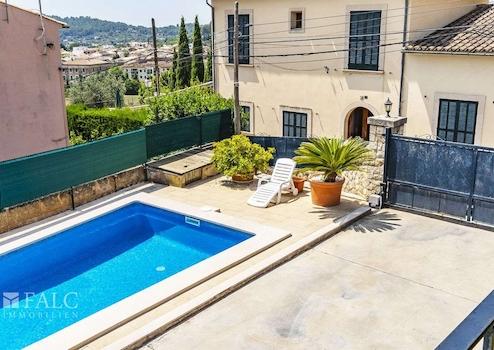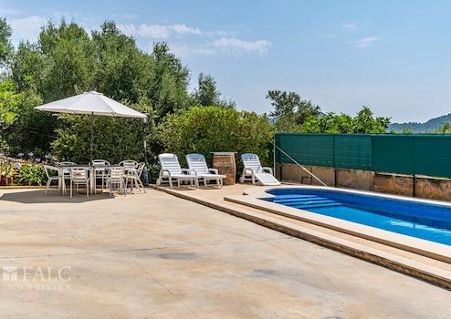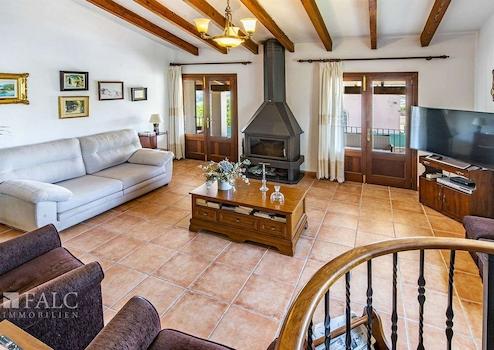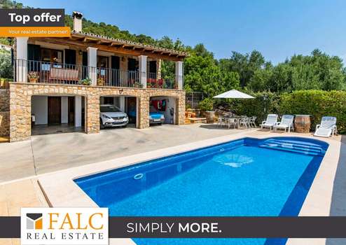 Auf einem schönen Grundstück von ca. 680 m2 mit Südausrichtung, nur wenige Meter vom Dorf entfernt, präsentieren wir Ihnen diese fantastische Villa im rustikalen Stil in Alaró. Das sonnige Objekt mit Steinfassade, umgeben von Naturrasen, verfügt über einen herrlichen Bergblick und einen wunderschönen Salzwasserpool, der an den heißesten Tagen zur Abkühlung einlädt. Die fabelhafte Immobilie verfügt über eine bebaute Fläche von ca. 197 m2, die sich auf 2 grosszügige Ebenen aufteilt: Eine schöne Eingangshalle mit Holzbalken, ein gemütliches Wohnzimmer mit Kamin und Zugang zu einer wunderschönen überdachten Terrasse mit Blick auf die Berge, ein zum Wohnzimmer hin offenes Esszimmer, eine grosszügige voll ausgestattete Küche, 4 Schlafzimmer mit Einbauschränken, eines davon mit Bad en suite, sowie ein weiteres zusätzliches Bad. Der schöne Aussenbereich des Hauses bietet angenehme Grünflächen mit Palmen, Aussenterrassen und einen reizenden Poolbereich mit Liegestühlen. Das Haus verfügt über eine Garage für 2 Fahrzeuge, einen Keller mit Gäste-WC und einen Abstellraum. Weitere Merkmale: mallorquinische Fensterläden, elektrische Heizung und Fliesenboden. Alaró ist ein kleines Dorf im Landesinneren Mallorcas, gelegen in einem schönen Tal am Fuße des Tramuntana-Gebirges. Mit etwa 5.500 Einwohnern und kaum 30 Kilometer von Palma und 25 Kilometer von Sóller entfernt, ist Alaró eine schöne Enklave im Landesinneren von Mallorca, deren Geschichte seit dem 13. Jahrhundert dokumentiert ist.