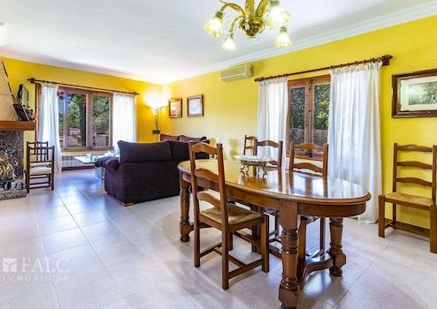 Umgeben von wunderschöner Natur und einer beeindruckenden Orangenbaumplantage, präsentieren wir diese charmante Finca in Sencelles. Die wunderschöne Immobilie mit südlicher Ausrichtung und einem grossen, erfrischenden Pool (10x5m) mit Jacuzzi befindet sich in der Nähe eines üppigen Waldes, nicht weit vom Ortskern von Sencelles entfernt. Die gemütliche 2-stöckige Finca liegt auf einem ca. 20.000 m2 grossen Grundstück mit viel Privatsphäre und bietet eine bebaute Fläche von ca. 187 m2, die sich wie folgt verteilt: Ein offener, lichtdurchfluteter Wohn-/Essbereich mit Kamin, der auf die tolle ca. 50 m2 grosse Poolterrasse mit grosszügigem, überdachtem Grillplatz mit Steinofen führt, eine moderne Einbauküche aus dem Jahr 2021, 4 gemütliche Schlafzimmer und 2 Bäder. Zudem gibt es zahlreiche Parkmöglichkeiten und ein attraktives Gästeapartment mit Schlaf- und Badezimmer ausgestattet. Weitere Detailmerkmale: Fliesenböden, Klimaanlage warm/kalt, Zentralheizung, Aussendusche -und toilette, Stadtwasser und -depot, Stadtstrom, ein grosser Parkplatz und Carport, Hauswirtschaftsraum und ein Abstellraum im 2. Stock der Finca. Sencelles ist ein schönes kleines Dorf, im Zentrum Mallorcas, geprägt von ursprünglich belassener mallorquinische Architektur. Das Stadtzentrum von Palma und der Flughafen sind nach ca. 30 Fahrminuten zu erreichen.