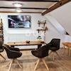 Dies ist nicht nur ein Haus, sondern ein Ort der Begegnung, des Lachens und der entspannten Morgenstunden. Die Räumlichkeiten bieten bequem Platz für zwei oder drei Familien mit Kindern, Freunde oder Gäste, die länger bleiben möchten als geplant. Auf zwei Etagen mit warmen Holzelementen befinden sich Schlafzimmer zum Einschlafen, komfortable Badezimmer, eine Küche, aus der der Duft selbstgekochter Mahlzeiten strömt, und ein großes Wohnzimmer, in dem das Knistern des Kaminofens die Gespräche bis spät in die Nacht begleitet. Kinder haben ihre eigene Welt voller Spiel, während Erwachsene Zeit für Billard, Darts oder einfach gute Gesellschaft finden.