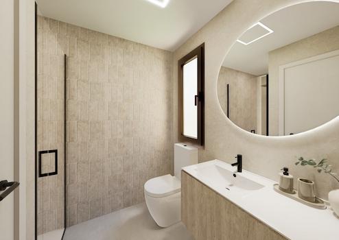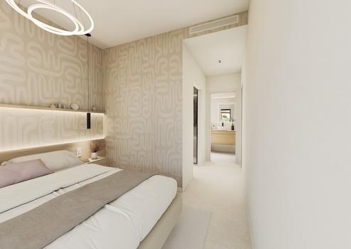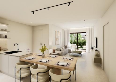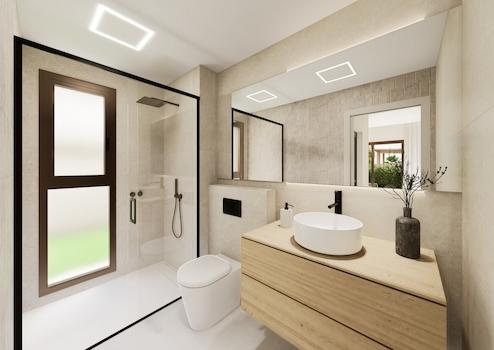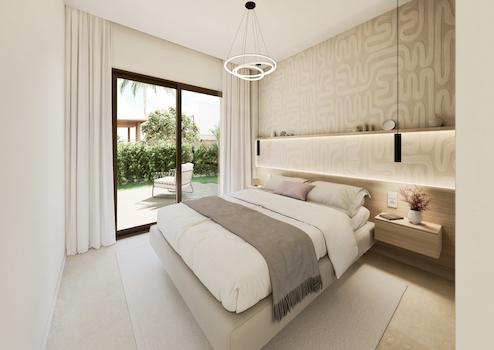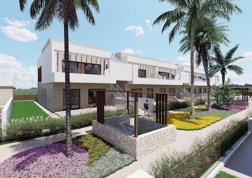 Die Innenräume dieser Häuser sind auf Komfort und Funktionalität ausgelegt. Mit einem Grundriss, der drei Schlafzimmer und zwei Badezimmer umfasst, ist jeder Raum optimal genutzt. Porzellanfliesenböden verleihen den Räumen eine moderne und elegante Note, während elektrische Jalousien und integrierte Geräte den Alltag erleichtern. Einbauschränke bieten effizienten Stauraum und sorgen für Ordnung und ein ansprechendes Erscheinungsbild. Die Vorinstallation für eine Klimaanlage gewährleistet zudem, dass das Haus das ganze Jahr über eine angenehme Temperatur bietet. Diese Details spiegeln das Engagement für Qualität und Komfort wider.