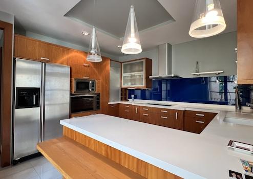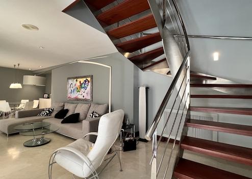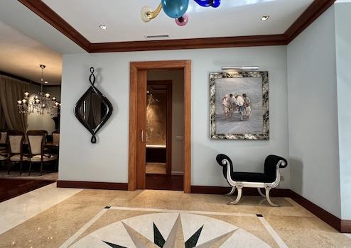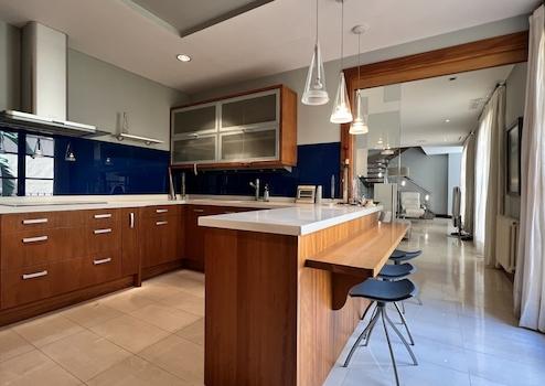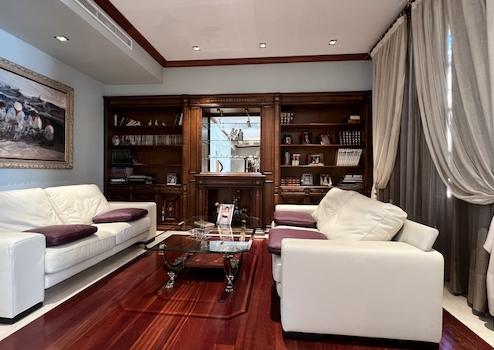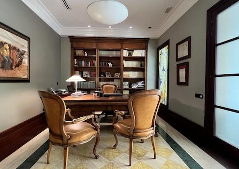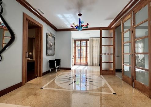 Hochwertige, teilweise traditionelle Ausstattung, Patio mit Brunnen und Ziegelsteinkamin, hochwertige Türen und Fenster aus Holz, hochwertige Fußböden aus Holz und Marmor mit aufwendigen Stilelementen, Heizung, Wintergarten, Eingangshalle, Alarmanlage, moderne Küchen und Bäder, Dachterrasse, u.v.a.m.