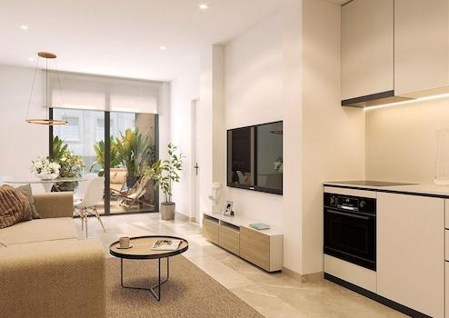 Dieses moderne Apartment mit Terrasse, einem Schlafzimmer und einem Badezimmer überzeugt durch durchdachten Wohnkomfort und eine attraktive Lage. Den Bewohnern steht ein Gemeinschaftspool zur Verfügung, zudem gibt es großzügige Parkmöglichkeiten rund um das Projekt sowie einen eigenen Abstellraum im Erdgeschoss.