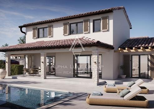 Ein modernes Haus mit Swimmingpool steht in ruhiger Lage nahe Svetvinčenat auf einem Grundstück von 640 Quadratmetern zum Verkauf. Die Immobilie befindet sich im ROH-BAU-Zustand und bietet dem zukünftigen Eigentümer die Möglichkeit, den Innenausbau individuell zu gestalten, sowohl als Familienhaus als auch als Investition zur touristischen Vermietung.