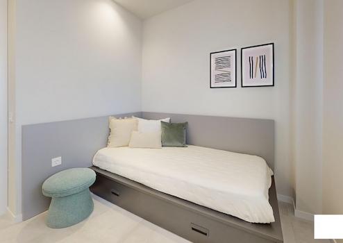 Der offen gestaltete Wohn- und Essbereich öffnet sich direkt zum privaten Garten, der zum Entspannen, Sonnen oder geselligen Beisammensein einlädt. Hochwertige Einbauschränke in den Schlafzimmern bieten durchdachten Stauraum und unterstreichen den eleganten Charakter der Wohnung. Die funktionale Raumaufteilung verbindet Ästhetik und Alltagstauglichkeit auf ideale Weise.