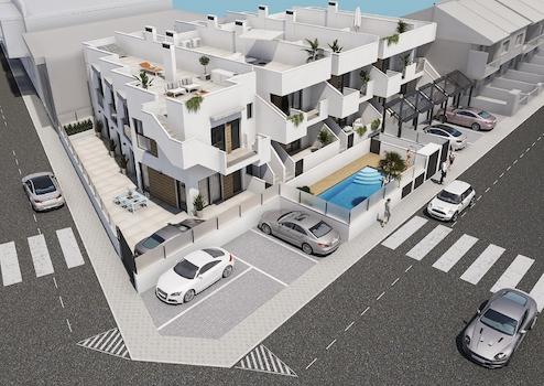 Diese exklusive Neubauanlage vereint modernes Design, hohen Wohnkomfort und mediterranes Lebensgefühl in perfekter Harmonie. Die stilvollen Bungalow-Apartments verfügen über drei großzügige Schlafzimmer und zwei elegant ausgestattete Badezimmer und bieten ideale Voraussetzungen für entspanntes Wohnen unter der Sonne Spaniens. Offene, lichtdurchflutete Wohnbereiche schaffen eine einladende Atmosphäre, während hochwertige Materialien und klare architektonische Linien den gehobenen Anspruch dieses Projekts unterstreichen. Ein gemeinschaftlicher Swimmingpool sowie ein privater Parkplatz sorgen für zusätzlichen Komfort und Alltagstauglichkeit.