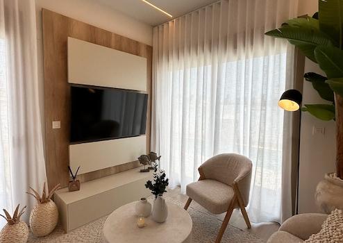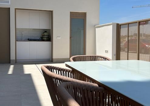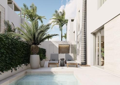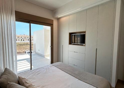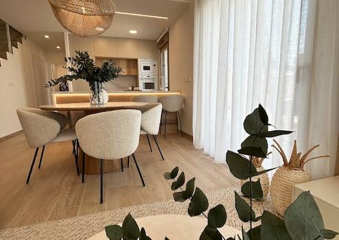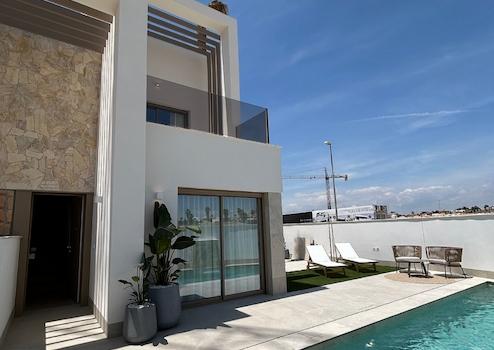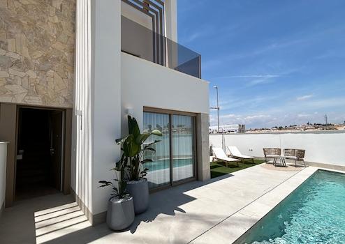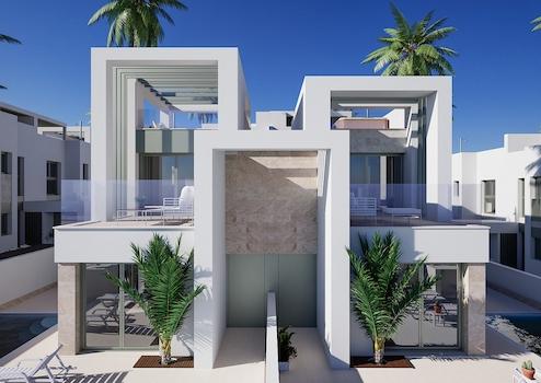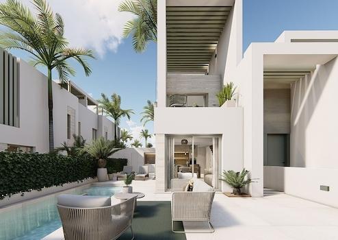 Diese modernen Doppelhaushälften in Lo Marabú verbinden stilvolles Design, mediterranen Komfort und höchste Wohnqualität auf einzigartige Weise. Jede Villa verfügt über drei großzügige Schlafzimmer, zwei elegante Badezimmer und praktische Einbauschränke, die für Ordnung und Funktionalität sorgen. Ein privater Garten, ein Solarium mit Sommerküche sowie ein eigener Swimmingpool mit Außentoilette schaffen den perfekten Rahmen für entspannte Stunden im Freien und gesellige Momente unter der Sonne Spaniens. Zusätzlich bietet jede Villa einen Stellplatz auf dem eigenen Grundstück, was Komfort und Privatsphäre ideal ergänzt.
