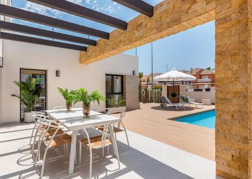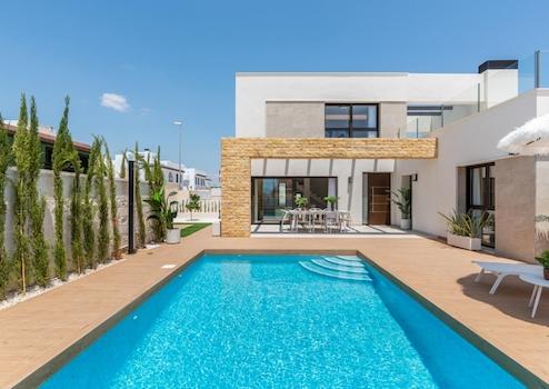 Diese exklusiven Allegra-Villen in der Urbanisation Doña Pepa - Ciudad Quesada vereinen modernen Stil, großzügige Raumgestaltung und luxuriösen Komfort auf einzigartige Weise. Jede Villa verfügt über drei Schlafzimmer, drei elegant ausgestattete Badezimmer und praktische Einbauschränke, die Funktionalität und Ordnung garantieren. Die großzügigen Außenbereiche laden zum Entspannen, Sonnenbaden und geselligen Momenten im eigenen Garten oder am privaten Swimmingpool ein. Käufer können zwischen zwei Modellen wählen: alle Räumlichkeiten auf einer Ebene oder verteilt auf zwei Etagen, je nach persönlichen Vorlieben und Lebensstil.