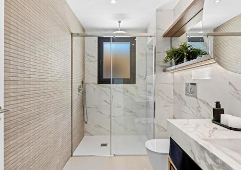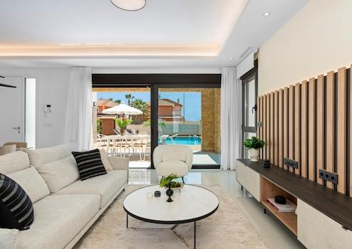 Hochwertige Ausstattungsmerkmale wie elektrische Rollläden im gesamten Haus, beleuchtete Einbauschränke, Sicherheits-Türen und erstklassige Oberflächen unterstreichen den Premiumcharakter dieser Villen. Ein privater Parkplatz auf dem eigenen Grundstück sorgt zusätzlich für Komfort und Privatsphäre.