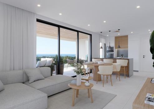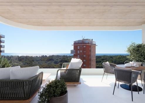Dieses exklusive Solarium-Apartment in Guardamar del Segura verbindet modernen Wohnkomfort mit mediterranem Flair. Mit zwei großzügigen Schlafzimmern, zwei elegant ausgestatteten Badezimmern und einer sonnigen Dachterrasse bietet es ein Zuhause, das perfekt auf entspanntes Wohnen, Erholung und geselliges Beisammensein ausgelegt ist. Das Projekt umfasst 18 hochwertige Apartments und zwei luxuriöse Penthouses auf zehn Etagen und besticht durch großzügige Terrassen, grüne Gemeinschaftsflächen und einen einladenden Swimmingpool. Private Parkplätze und Fahrradstellplätze runden das Angebot ab, während die nachhaltige Bauweise und energieeffiziente Einrichtungen für langfristige Wertbeständigkeit sorgen.