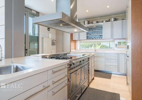 Die exklusive Immobilie überzeugt durch ihre zeitlose Eleganz und die Verwendung edler Materialien wie Kirschholz, Stahl, Marmor und Glas. Die bebaute Fläche von ca. 825 m² erstreckt sich über drei Etagen und gliedert sich wie folgt: