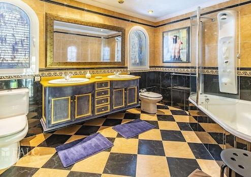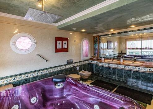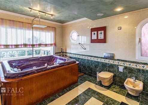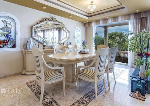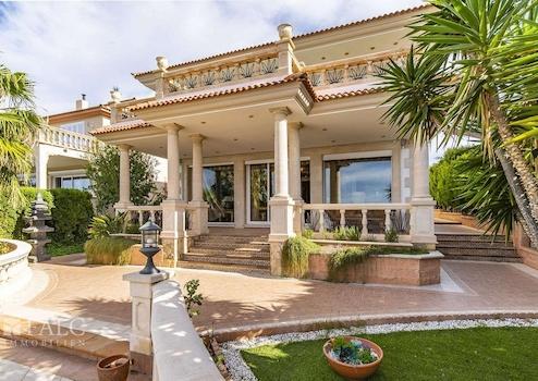 Diese exzellente Villa in Bahia Grande, welche sich in der Gemeinde Llucmajor und praktisch an der Grenze zu Palma befindet und eine einzigartige Lage an der Südküste Mallorcas einnimmt, bietet in erster Meereslinie einen herrlichen Panoramablick auf die Bucht von Palma. Das wunderschöne 3-stöckige Objekt, mit einem einzigartigen Stil und Baueigenschaften, die auf der Insel sehr selten sind, umfasst ein sonniges Grundstück von ca. 809 m2 und eine bebaute Fläche von ca. 604 m2 (ca. 376 m2 Wohnfläche), die sich wie folgt aufteilt: Ein charmanter Haupteingang, ein wunderschönes, sehr geräumiges Wohnzimmer mit Kamin und Essbereich mit traumhaftem Meerblick, 4 Schlafzimmer mit Einbauschränken, 3 Bäder und ein Gäste-WC. Das Hauptschlafzimmer bietet einen geräumigen Ankleideraum und ein en-suite Badezimmer mit Jacuzzi und Blick auf die Bucht von Palma. Die fantastische Immobilie verfügt über eine grosse Dachterrasse, von der aus man die Aussicht noch besser geniessen kann. Der schöne Aussenbereich des Hauses besticht durch seinen exzellenten Panoramablick, einen beeindruckenden erfrischenden Pool, ideal für die heissesten Tage und einen gepflegten Garten mit Palmen. Weitere Merkmale: grosse Garage für 3 Fahrzeuge, Zentralheizung, Klimaanlage, doppelt verglaste Fenster, Alarmanlage und vieles mehr. Es handelt sich um eine wunderschöne Villa, in der Sie das mediterrane Ambiente und den unschlagbaren Meerblick bewundern können. Die ruhige Wohngegend von Bahia Grande liegt nur wenige Autominuten vom schönen Strand der Playa de Palma und dem Flughafen entfernt.