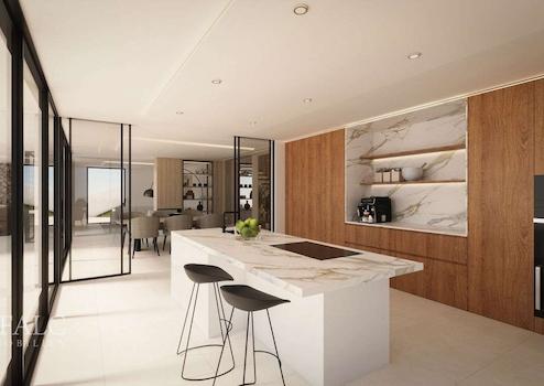Diese aussergewöhnliche Immobilie bietet eine beeindruckende Wohnfläche von ca. 506 m2 sowie ein grosszügiges Grundstück von ca. 1311 m2 und erfüllt selbst höchste Ansprüche an Lebensqualität. Die Villa umfasst 4 geräumige Schlafzimmer sowie 3 Badezimmer über drei Etagen verteilt, um höchsten Komfort zu gewährleisten. Darüber hinaus ist die hochmoderne Küche mit erstklassigen Geräten sowie exquisiten Oberflächen ausgestattet. Die weitläufigen offenen Wohnbereiche sind durch bodentiefe Fenster lichtdurchflutet und schaffen einen nahtlosen Übergang zum Aussenbereich mit sonnigen Terrassen und einem Infinity-Salzwasserpool. Von hieraus hat man einen atemberaubenden Ausblick über die Bucht und schafft somit den idealen Rahmen für Entspannung oder gesellige Zusammenkünfte. Mehrere Aussenlounge-Bereiche laden dazu ein, das Sonnenlicht zu geniessen sowie die beeindruckende Landschaft zu bewundern. Zu den zusätzlichen Annehmlichkeiten dieser Luxusvilla zählen eine grosszügige Garage für bis zu 15 Fahrzeuge, Fussbodenheizung im gesamten Haus sowie ein umweltfreundliches Aerothermie-System.