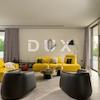 Das Erdgeschoss präsentiert sich als offener Wohnbereich im Open-Space-Stil. Hier erwartet Sie ein helles und modernes Wohnzimmer, das dank großer Glasschiebewände von Tageslicht durchflutet wird. In der luxuriösen Küche, ausgestattet mit modernster Technik führender Marken, können Sie Ihre Lieblingsgerichte zubereiten. Ein besonderes Highlight ist der dekorative Kamin, der seine Farbe wechselt und so vor allem abends für eine stimmungsvolle Atmosphäre sorgt.