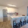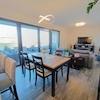 Die Wohnung hat eine Nettofläche von 77 m² und besteht aus Eingangsbereich, zwei Schlafzimmern, Badezimmer und separatem WC, Abstellraum sowie einem geräumigen Wohnbereich mit Küche und Essbereich. Vom Wohnzimmer gelangt man auf die überdachte Terrasse (19 m²) mit teilweisem Meerblick.