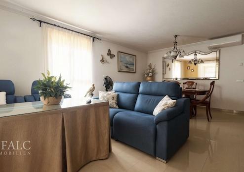 Willkommen in Ihrer wunderschönen Terrassenwohnung in Palma de Mallorca, einem Zuhause, das mediterrane Lebensfreude mit großzügigem Wohnkomfort verbindet. Bereits vor dem Eintreten empfängt Sie eine charmante Terrasse von ca. 9 m² – ein idealer Ort für den ersten Kaffee am Morgen oder entspannte Abende unter mallorquinischem Himmel.