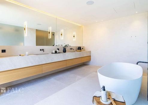 Diese fabelhafte, exklusive Neubau-Villa in Palma de Mallorca bietet einen schönen Blick ins Grüne und befindet sich in einer ruhigen Wohngegend, im Viertel Génova. Die moderne Immobilie zeichnet sich durch hohe Decken, grosse bodentiefe Fenster, sowie eine grosszügige Raumaufteilung aus. Die bebaute Fläche von ca. 500 m2 verteilen sich wie folgt: Das Erdgeschoss bietet ein schönes Wohn-/ Esszimmer, eine moderne Küche mit Kochinsel, 3 Schlafzimmer mit Badezimmern en Suite, eine Gästetoilette, einen Hauswirtschaftsraum und eine Terrasse mit Pool. Auf der ersten Etage befindet sich ein extravagantes Hauptschlafzimmer mit Bad en Suite und Zugang zur Dachterrasse mit dem zweiten Pool und schöner Aussicht. Zu den Ausstattungsmerkmalen dieser fantastischen Villa in Génova zählen: Klimaanlage, Fussbodenheizung, doppelt verglaste Fenster, sowie Stein- und Holzböden. Zur Verfügung steht eine grosse Tiefgarage mit Platz für 3 Fahrzeuge. Es handelt sich um eine attraktive Lage, nur wenige Autominuten von den Golfplätzen und fabelhaften Stränden und Buchten mit türkisfarbenem Wasser entfernt. Der internationale Flughafen ist 15 Autominuten entfernt.
