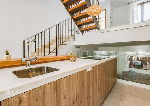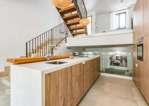 Inmitten der beeindruckenden Berglandschaft der traumhaften Sierra de Tramontana gelegen, präsentieren wir Ihnen dieses exklusive Neubau-Reihenhaus in Fornalutx. Das exklusive Objekt ist Teil von 6 hochwertigen Reihenhäusern mit unschlagbarem Blick auf die atemberaubende Bergkulisse. Die lichtdurchfluteten Immobilien, die auf dem letzten Baugrundstück in Fornalutx errichtet wurden, bieten eine perfekte Kombination aus rustikalem und modernem Design. Jede Immobilie hat eine Grundstücksfläche zwischen 288 m2 und 1043 m2 und eine grosszügige Wohnfläche, die sich auf 3 geräumige Etagen verteilt. Dieses Haus ist eines der Größten, mit einer Wohnfläche von 168 m2, die sich auf eine schöne Eingangshalle, ein fantastisches Wohn-/Esszimmer mit grossen, lichtdurchfluteten Fenstern, die zum herrlichen Garten mit privatem Pool und wundervollem Blick auf die Berge führen, eine exzellente, mit Siemens- und Liebherr-Geräten ausgestattete Küche, 3 Schlafzimmer mit Einbauschränken und 3 Bäder en-suite aufteilt. Weitere Ausstattungsmerkmale: Fussbodenheizung, Klimaanlage warm/kalt, doppelt verglaste Fenster aus Iroko-Holz, Stein- und Keramikböden, Domotiksystem, automatische Bewässerungsanlage, Abstellraum sowie 2 Parkplätze, einer in der Garage und der andere im Freien. Fornalutx, inmitten der Sierra de Tramontana, nur 10 Kilometer von der Nordküste Mallorcas entfernt, gilt als eines der schönsten Dörfer Spaniens.