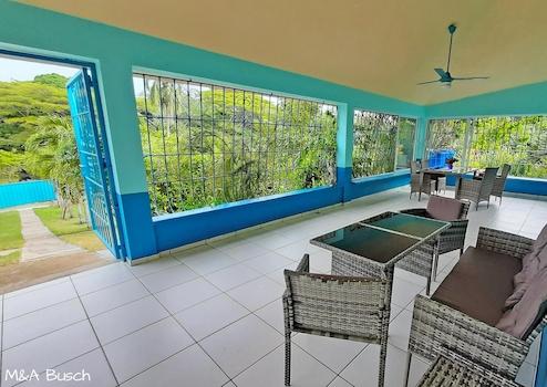 Der komplett eingezäunte, parkähnliche und kaum einsehbare Garten lädt zum Sonnenbaden am Pool und zu Spaziergängen ein. Das großzügige Grundstück ist bestens zur Tierhaltung geeignet und bietet weitere Bebauungsmöglichkeiten. Nicht nur exotische Pflanzen und Blumen setzen Farbakzente, Obstbäume wie Avocado, Mango, Noni und Orangen sowie Bananenstauden und Ananas bereichern den Speiseplan. Für den Gemüse- und Kräuteranbau steht ein Hochbeet bereit. Der traumhafte Baumbestand spendet an heißen Tagen nicht nur Schatten, sondern bietet Lebensraum für Kolibris und Singvögel.