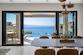 The ground floor consists of a spacious living room with a kitchen and dining area, which provides access to a sun terrace and an overflow pool with amenities (waterfall, electrolysis, massage, counter-current). The living room features a fireplace. The terrace features a bioclimatic pergola and outdoor speakers.
