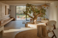 On the ground floor, there's a garage with two parking spaces, which offers direct access to the house. There's also a laundry room. Upon entering, you're captivated by a large, open-plan space where the kitchen, dining room, and two living rooms are connected, all surrounded by large glass walls. The star of the house is the century-old olive tree in the center of the living room.