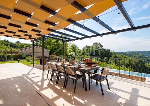 Im Herzen Zentralistriens, in einer ruhigen Umgebung in der Nähe von Motovun, befindet sich eine exklusive freistehende Bungalowvilla, die durch ihre Architektur, Lage und Ausstattung eine perfekte Mischung aus Luxus, Privatsphäre und Natur bietet. Von der Villa aus genießt man einen bezaubernden Blick auf das grüne Tal, die Hügel Istriens und an klaren Tagen sogar bis nach Slowenien und Italien.
