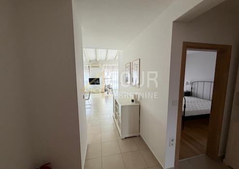 In Ližnjan, wird eine schöne, voll möblierte Maisonette-Wohnung im zweiten, auch letzten Stock eines neueren Gebäudes vermietet. Die Wohnung strahlt Leichtigkeit und eine gute Raumaufteilung aus: Beim Betreten befinden sich auf der rechten Seite zwei Schlafzimmer, eines davon mit eigenem Bad, während auf der linken Seite ein zusätzliches Badezimmer liegt. Der zentrale Teil der Wohnung besteht aus einem geräumigen Wohnzimmer, das mit Küche und Esszimmer verbunden ist, von dem aus man auf eine Terrasse mit einem sehr schönen, offenen Blick gelangt.