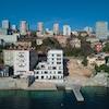 Das Gebäude besteht aus drei Untergeschossen (unter Straßenniveau) und drei Obergeschossen (Erdgeschoss und zwei Obergeschosse) mit direktem Strandzugang.