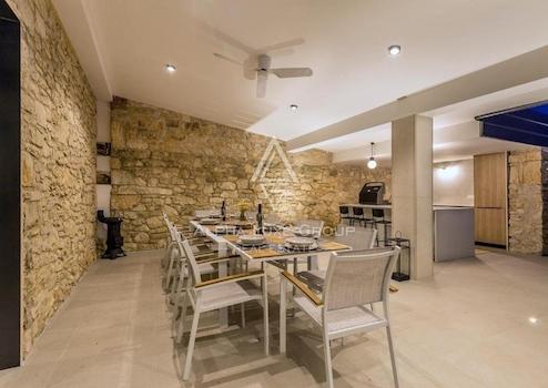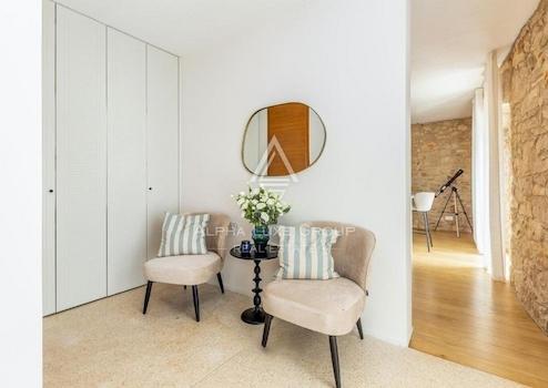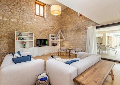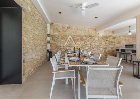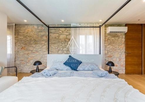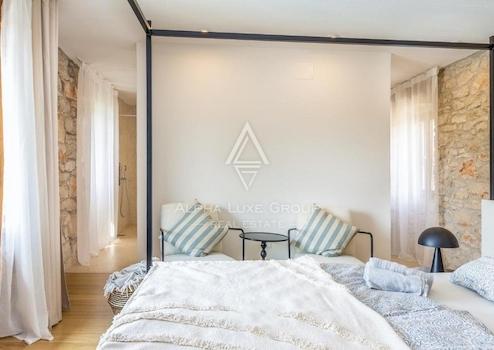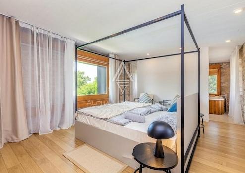 Die Villa verfügt über vier sorgfältig gestaltete Schlafzimmer und drei Bäder, die alle mit viel Liebe zum Detail renoviert wurden. Der Außenbereich ergänzt die Innenräume der Villa mit einem großen Pool, einer Sauna, einer Außendusche und einer Pergola, die ideal für gesellige Abende oder entspannte Momente sind. Der Garten ist üppig bepflanzt und bietet maximale Privatsphäre.