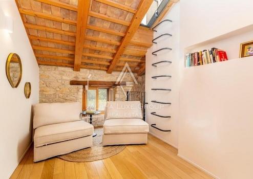 Die Villa erstreckt sich über drei Ebenen: Erdgeschoss, erstes Obergeschoss und Dachgeschoss, mit einer Gesamtfläche von 312 m² sowie zusätzlichen 37 m². Das großzügige Wohnzimmer mit offenem Kamin erstreckt sich über die gesamte Höhe der Villa und schafft eine einladende Atmosphäre. Die moderne Küche ist nahtlos in das traditionelle Design integriert und bietet sowohl Funktionalität als auch Stil.