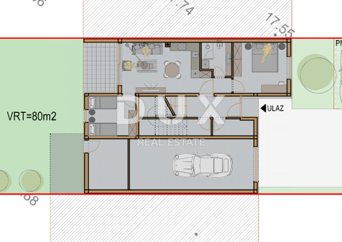 Im ruhigen und attraktiven Ort Valdebek bei Pula, nur ca. 3 km vom Meer und dem Stadtzentrum entfernt, befindet sich ein modern gestalteter, hochwertiger Neubau. Im Rahmen dieses Projekts wird diese äußerst attraktive Erdgeschosswohnung angeboten, die sich durch ein seltenes und begehrtes Merkmal auszeichnet: einen eigenen Garten. Diese Art von Immobilie bietet ein wohnliches Ambiente mit allen Annehmlichkeiten modernen Wohnens und vereint Privatsphäre, Komfort und mediterranen Lebensstil.