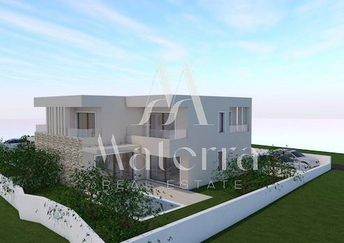 Zu verkaufen ist ein modernes Doppelhaus in Neubau, in einer attraktiven und ruhigen Lage in Vodice, nur 700 m vom Strand und dem Ortszentrum entfernt.