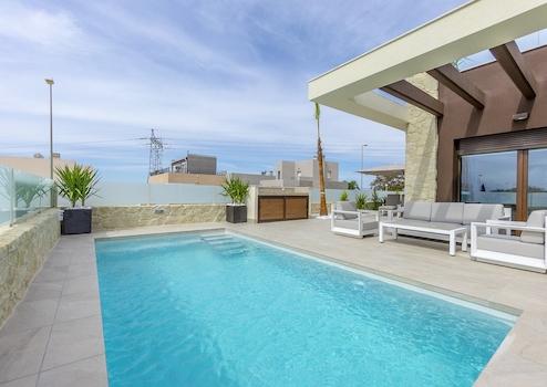 Diese luxuriöse Villa mit drei Schlafzimmern und zwei Badezimmern bietet ein außergewöhnliches Wohngefühl in einer der schönsten Lagen von Rojales. Auf einem Hügel erbaut, eröffnet sich Ihnen ein atemberaubender Panoramablick über die Umgebung, den Segura-Fluss und die nahegelegenen Naturparks. Ein privater Swimmingpool und ein Stellplatz auf dem eigenen Grundstück sorgen für Komfort und Entspannung in Ihrem neuen Zuhause.