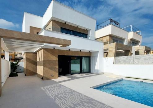 Diese exklusiven freistehenden Villen in San Miguel de Salinas vereinen Komfort, Stil und mediterranes Lebensgefühl auf perfekte Weise. Jede Villa verfügt über drei Schlafzimmer, drei Badezimmer, Einbauschränke, einen privaten Parkplatz und optional einen Swimmingpool. Die Grundstücke beginnen bei 180 m² und bieten einen liebevoll gestalteten Garten, in dem Sie Sonne und Ruhe genießen können.