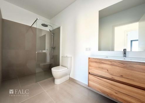 - Badezimmer mit bodengleicher Dusche und Glasduschwand