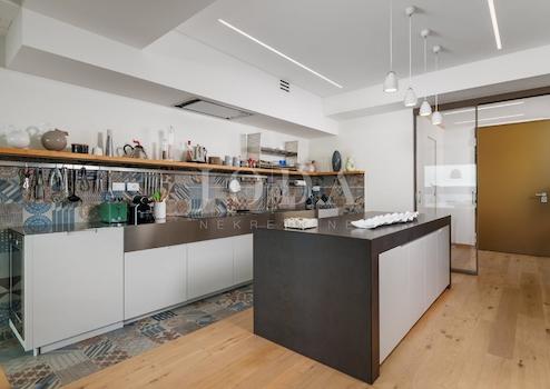 Die Küche ist handgefertigt, besteht aus einem einzigen Stück Edelstahl und ist über 4 Meter lang. Sie ist komplett mit NEFF-Geräten ausgestattet.
