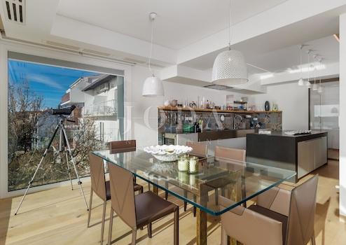 Für die erdbebensichere Konstruktion wurden 42 Tonnen Stahl verwendet. Das Dach besteht aus Zink und Titan – eine dauerhafte Lösung von außergewöhnlicher Qualität. Die Außenschreinerarbeiten sind eine Kombination aus Aluminium und Massivholz, die Verglasung ist dreifach verglast in der Farbe Bianco Absoluto.
